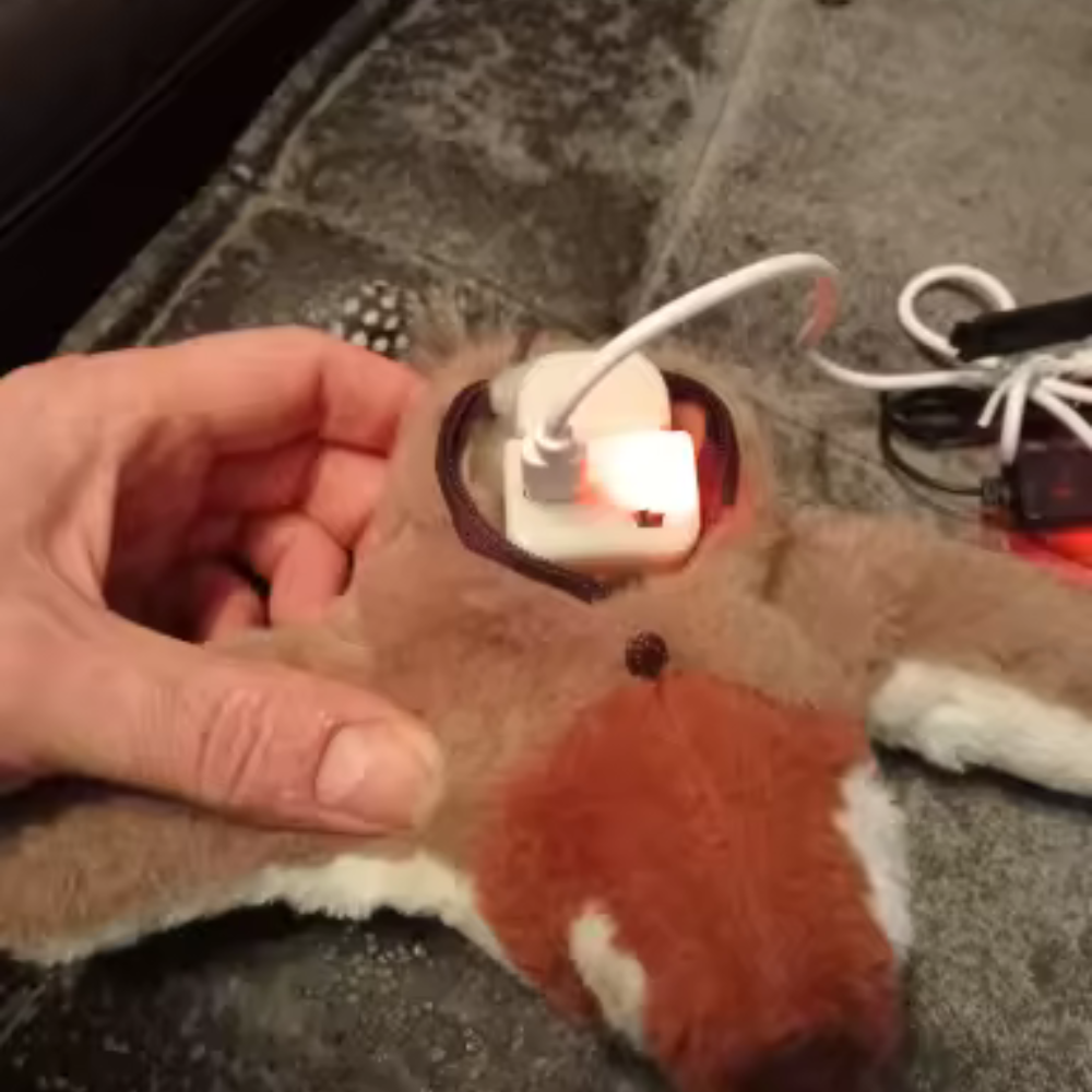 Ja. Die Plüschhülle kann vom inneren Mechanismus abgenommen werden, um sie einfach zu reinigen. Wasche den Bezug per Hand mit mildem Waschmittel und lasse ihn vollständig an der Luft trocknen, bevor du ihn wieder anbringst.